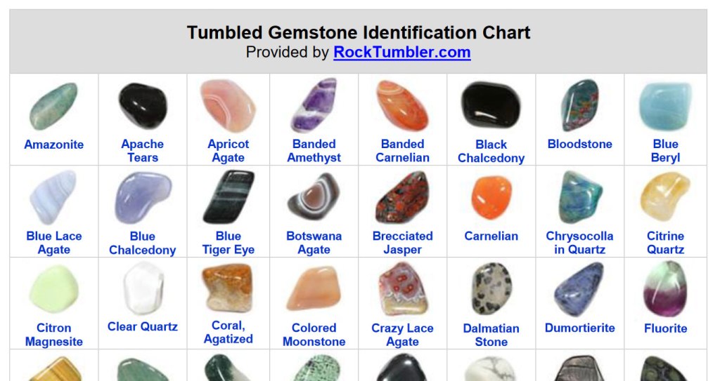 RockTumbler.com Picture Guide to Polished Rocks and Tumbled Stones includes pictures and names of tumbled stones plus more information about each type of rock or mineral: https://rocktumbler.com/polished-stones/